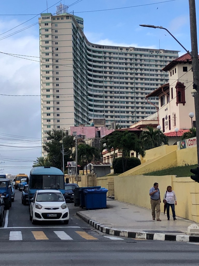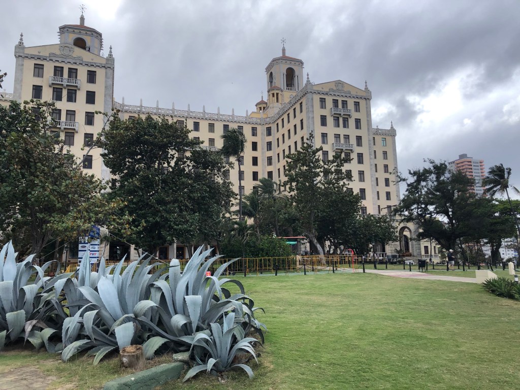 After lunch, Jose took us past the university (state-paid education in Cuba is great, Jose says), and what used to be the Habana Hilton, before being nationalized in 1960 under Fidel Castro’s regime when it got it’s current name: Hotel Habana Libre. The landmark Hotel Riviera is nearby, as is the Hotel Nacional de Cuba, which remains a dramatic presence with the building and grounds—as well as a prominent Cuba sign on a bluff at the edge of the property—overlooking the waterfront.
