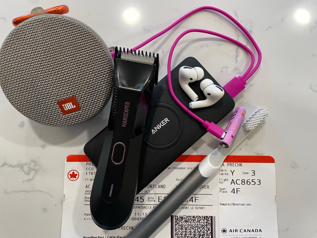 - Pros: small and easy to pack, including compact guard attachments for different lengths good for most trimming. I even gave the hubby a buzz cut with it in a recent trip. Battery life is great, and unlike my Sonos speaker, there’s a travel lock to prevent it from turning on inside your luggage (which helps avoid embarrassing and unintentional buzzing!). Even better, no need to pack the charging base: it charges on a wireless charging pad.