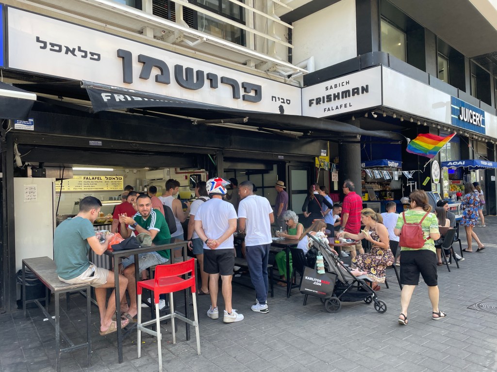 Falafel Frishman (and Sabish Frishman, which I was too full to try) is, you guessed it, on Frishman Street. If you like falafel, you’ll love the ones here. If you’re not sure if falafel are your jam, I’m not sure if we’ll be friends, but I still think you’ll find it’s delicious here. The falafel balls are fresh out of the fryer (which you’ll likely see when you’re standing in the inevitable line) and everything else stuffed into the pita is unbelievably fresh. If you’re in need of something sweet afterwards, cross the street and Golda’s (a local chain) is a few doors down.