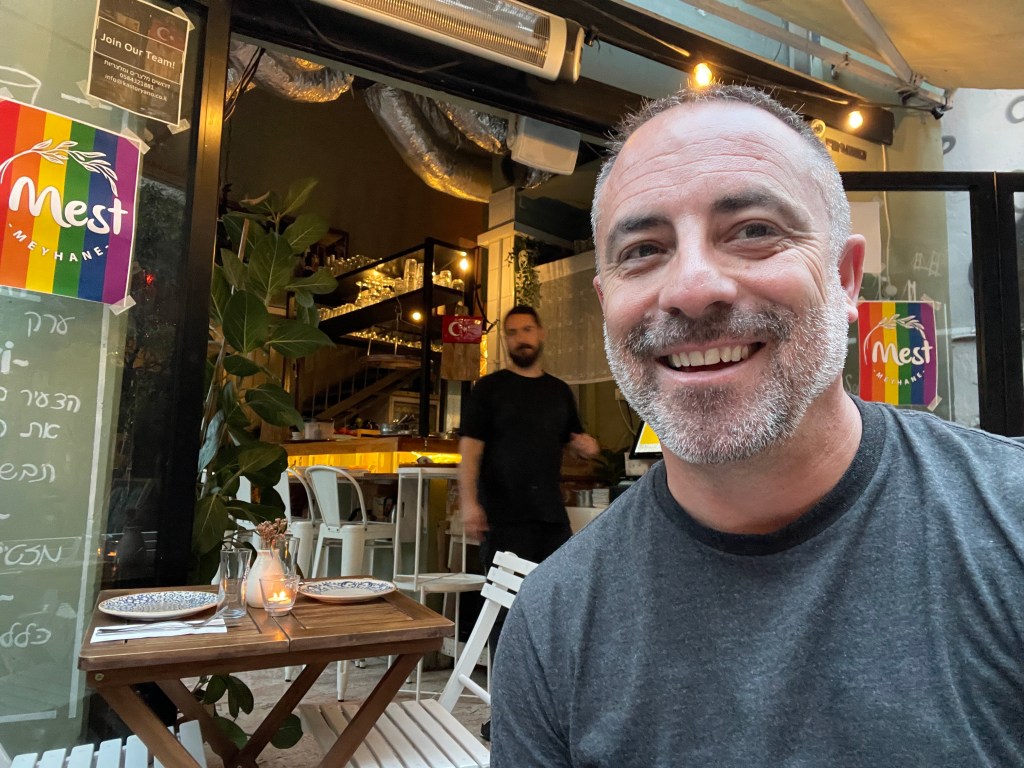 Shpagat is, as I understand it, the stalwart of Tel Aviv’s gay bar scene. We arrived early on Sunday evening—maybe 7pm (?) and were nearly the only ones there besides the staff. But the staff were fun and attentive, and as the evening wore on, the crowd picked up.