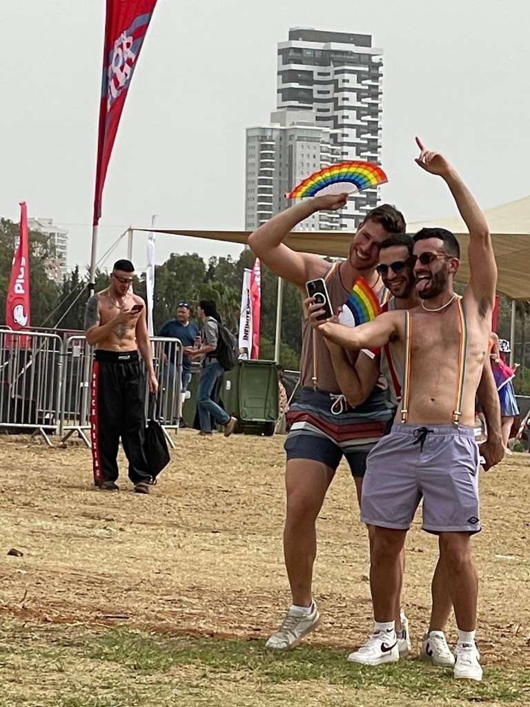 The pride festival was on Friday afternoon on one side of the hill of the Ganei Yehoshua part of Park HaYarkon. Wear comfortable shoes: the park is huge and this part of it is a ways away from parking, transit, and scooter-permitted areas. Forget what youβve experienced at American or maybe even European pride events: there were almost no booths nor tables from corporate or local businesses. Just a stage with good live music, beer and cocktails, and some food. A celebration, for sure.