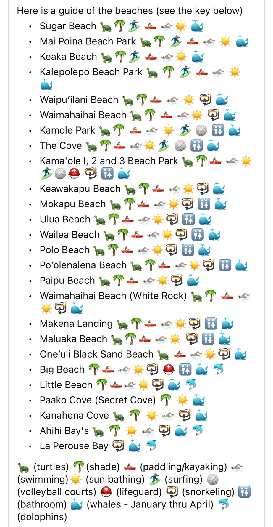 The internet delivered an awesome emoji-focused guide I’ve shared here to help narrow down the best beach, whether you’re snorkeling, swimming, whale watching, or whatever. Other beaches I’ve enjoyed include: