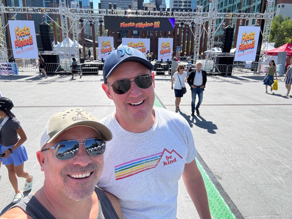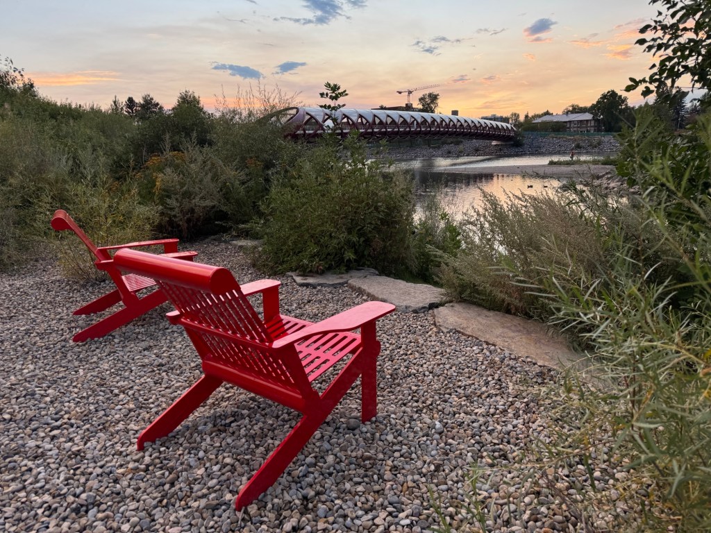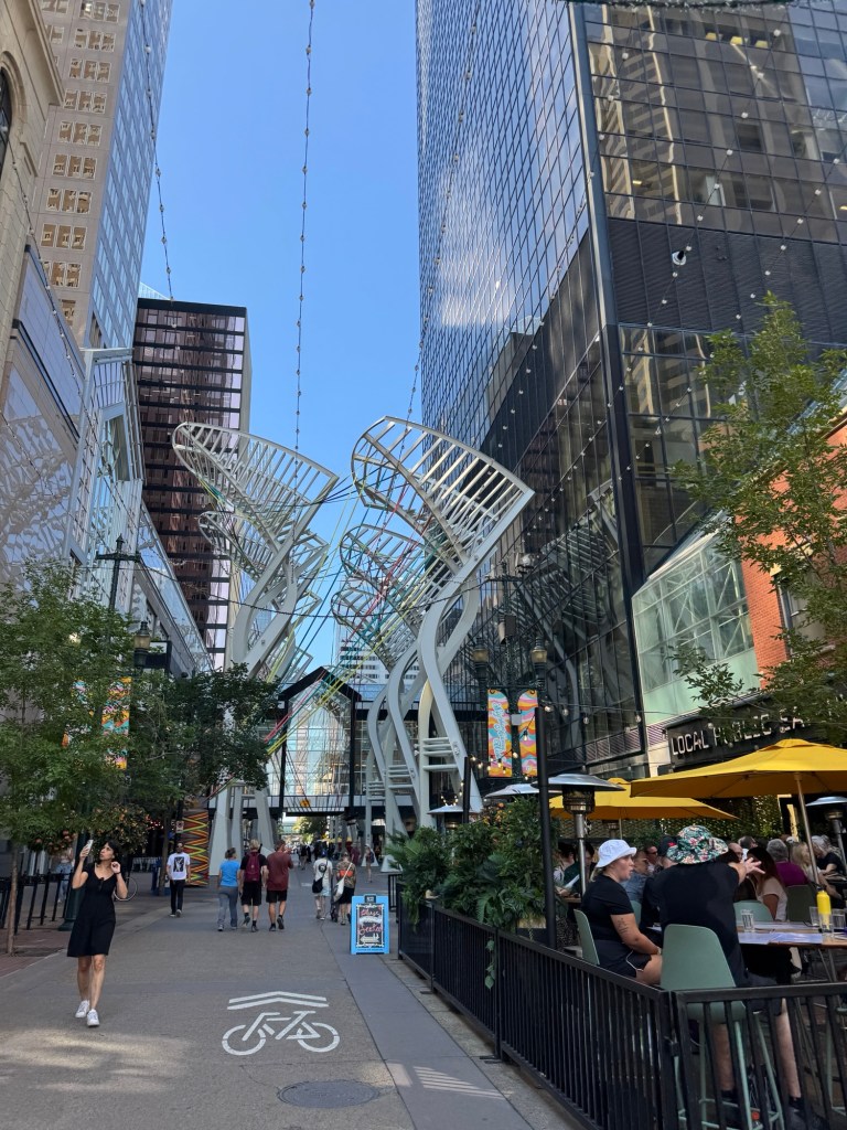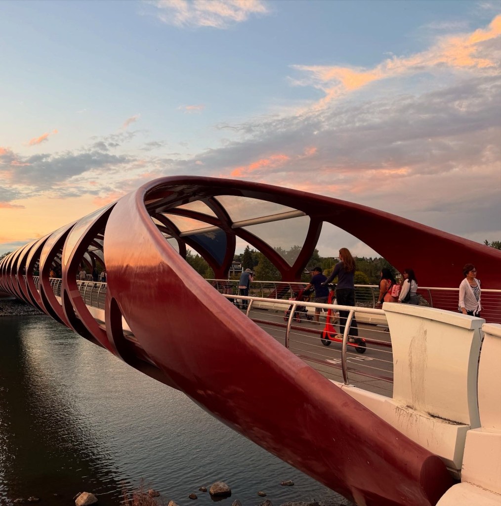 Since we were in Calgary for Pride weekend, we departed Trolley 5 for the festival in Prince’s Island Park. En route, we also checked out Fiesta Filipino in nearby Eau Claire Park. Whether or not there’s an event in either park the area is a beautiful place to check out. In particular, a walk (or bike or scooter ride) along the riverfront path is a great way to take the Calgary’s mix of nature and city, and the Calatrava-designed Peace Bridge is a Calgary Icon as well as a fun sight for architecture and design fans.